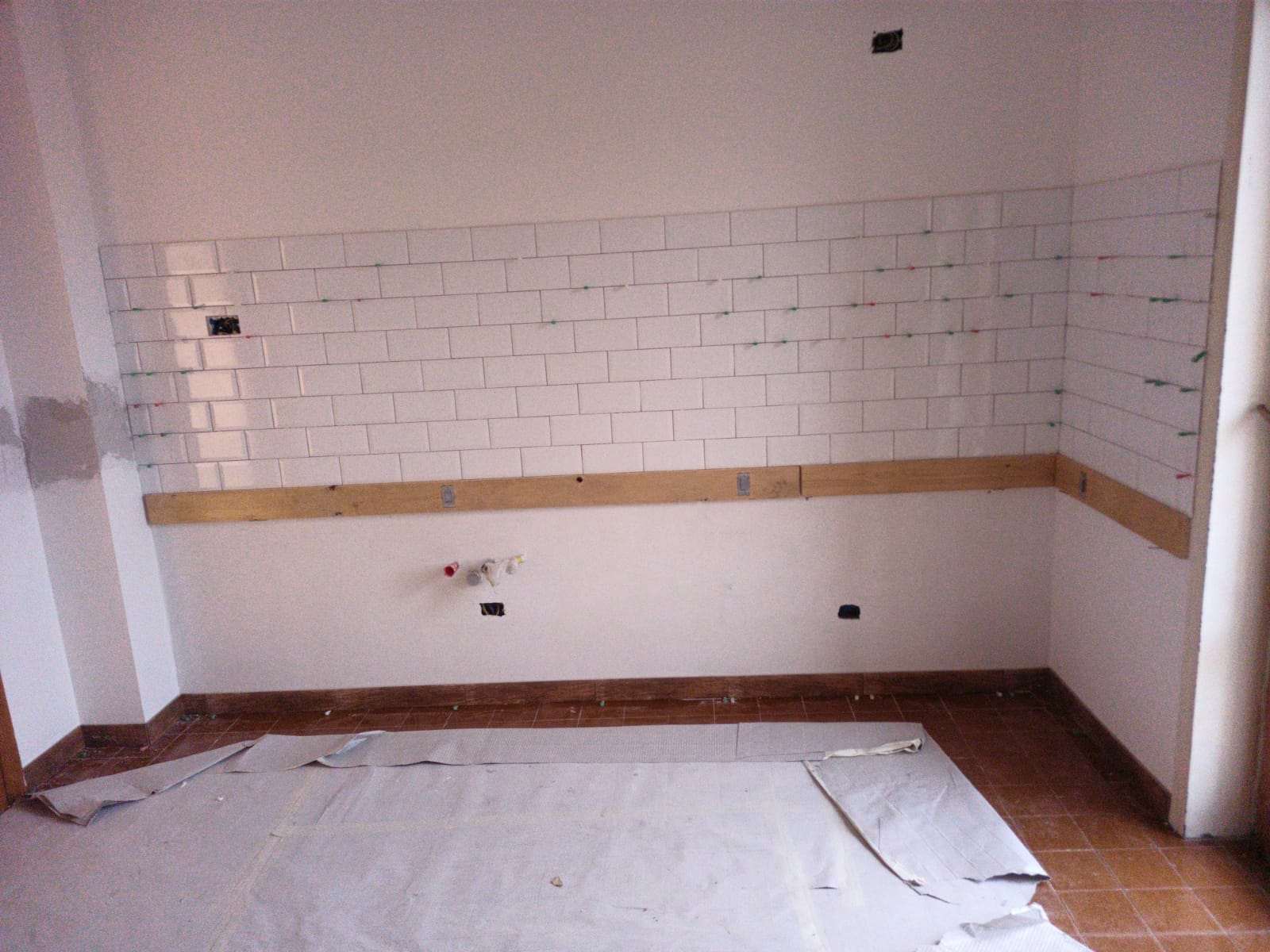 Ristrutturazione della cucina con rispettiva demolizione dei vecchi rivestimenti e ricostruzione del nuovo con delle piastrelle in monocottura.