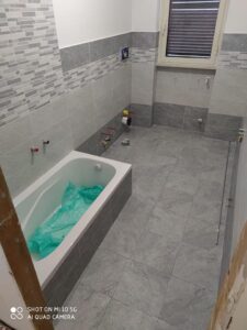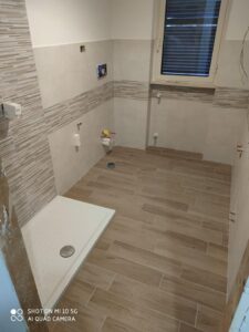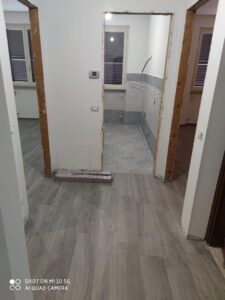 Per questo lavoro il committente ci ha richiesto l’installazione di un pavimento in gres porcellanato “effetto legno”, una raffinata alternativa al parquet che unisce il calore e la naturalezza del legno alle performance della ceramica di alta qualità, una scelta molto gettonata nella provincia di Viterbo ed in generale in tutta Italia poiché conferisce alla casa uno stile moderno con un tocco di design vintage.